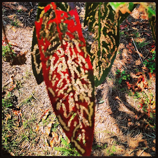 Loved these spectacular leaves from the Quandong tree with their amazing insect trails which characteristically are to be found wherever there is a tree at this stage in its cycle.